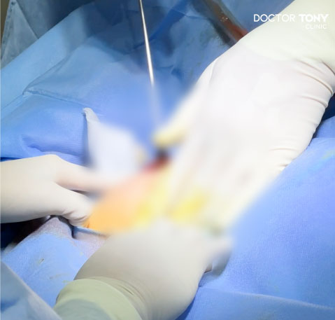 • ดูดไขมันทีละจุดด้วย cannula จนผิวเรียบ